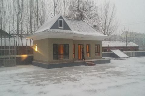 该项目在惠州博罗公庄,是康华农家乐VIP餐厅,占地面积140平米,外观设计非常漂亮。轻钢别墅房,依山傍水,周围绿树成荫,屋面波纹形沥青瓦别具一格。该别墅结构采用了目前最新颖的轻钢结构,墙体使用了国内首创我们晋马3D打印快建墙,外墙则用了目前国内最好的进口日吉华板, 此项目于2015年12月23号开始施工,二十天主体整体结束完美收官。